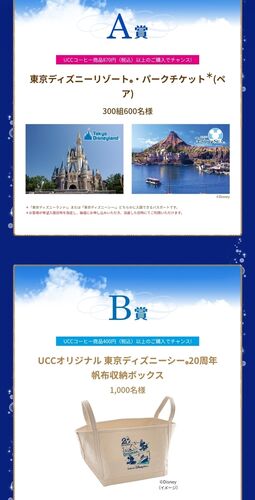 東京ディズニーリゾートパークチケット(ペア)などが当たる懸賞です UCC 2021 COFFEE DREAMキャンペーン <レシート・領収書等有効期間:2021年9月15日(水)~2021年12月15日(水)> 応募締切 郵送応募締切:2021年12月21日(火) ※当日消印有効WEB応募締切:2021…