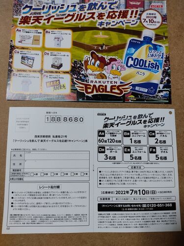 楽天イーグルス観戦チケット、グッズが当たる懸賞です