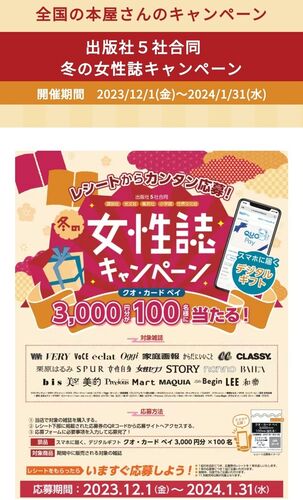 QUOカードペイ3000円分が当たる懸賞情報です