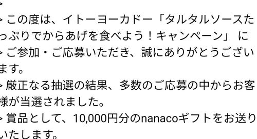 当選品 2月7個目 イトーヨーカドー タルタルソース+からあげ 10,000円分