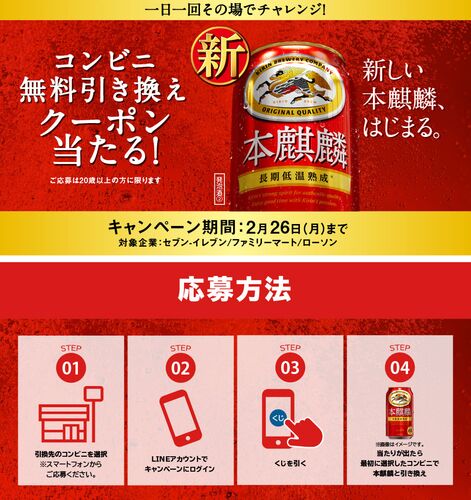 新本麒麟のコンビニ無料引き換えクーポンが当たる懸賞情報です