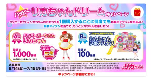 ハッピーセット限定「ハンバーガーやさんリカちゃん」などが当たる懸賞情報です