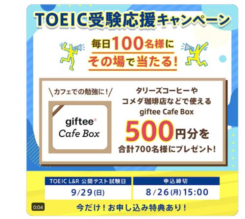 giftee Cafe Box 500円分が当たる懸賞情報です
