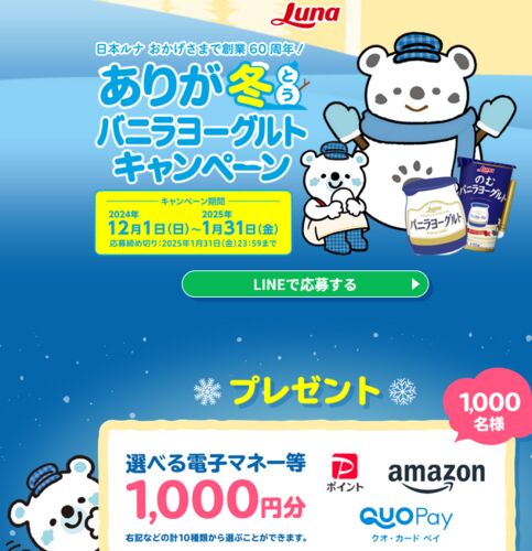 選べる電子マネー等1,000円分が当たる懸賞情報です