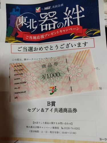 【当選品】 ヨークベニマル×味の素AGF東北 器の絆 商品券1000円分