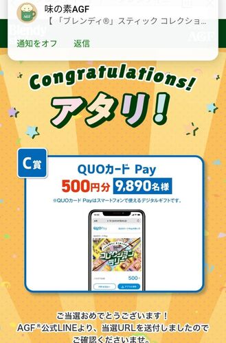 【当選品】12月8・9個目 ブレンディスティック コレクション QUOカードPay 500円分