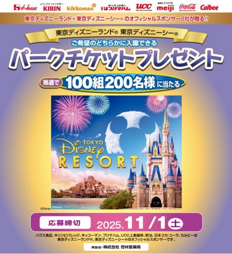 東京ディズニーランドプライベート・イブニング・パーティー(貸切)ご招待券などが当たる懸賞情報です