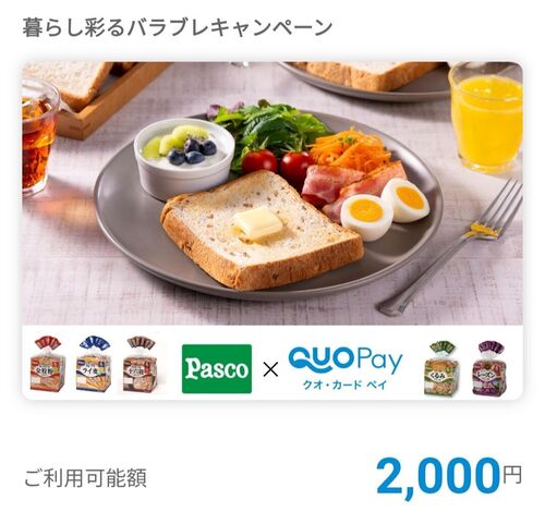 【当選品】12月7個目 パスコ バラエティブレッド QUOカードPay 2000円分