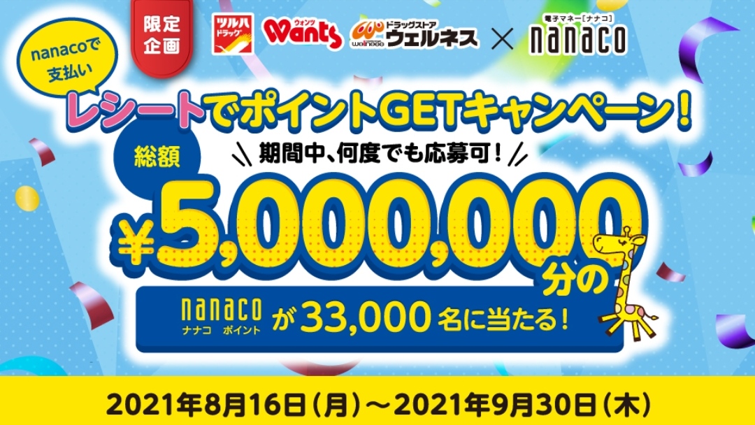 ツルハグループ×nanaco レシートでポイントGETキャンペーン