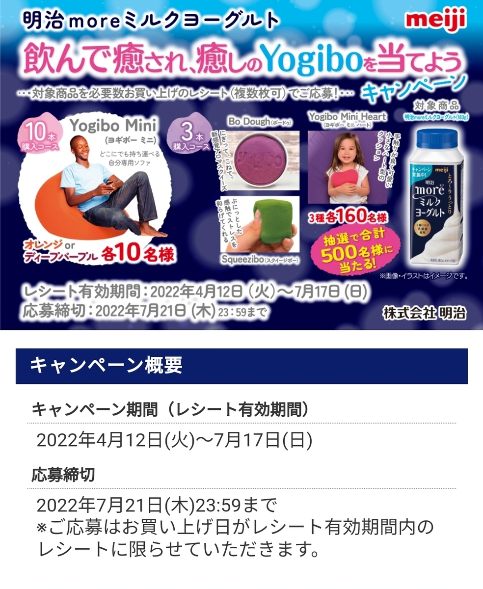 明治moreミルクヨーグルト 飲んで癒され、癒しのYogiboを当てようキャンペーン