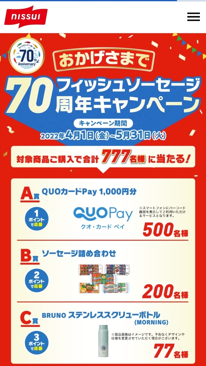 おかげさまでフィッシュソーセージ70周年キャンペーン│ ニッスイ