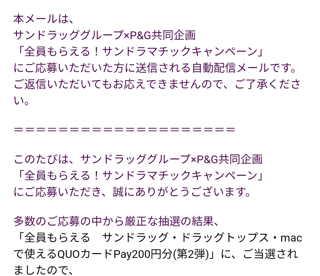 2月5個目 サンドラッグ×P&G QUOカードPay400円分