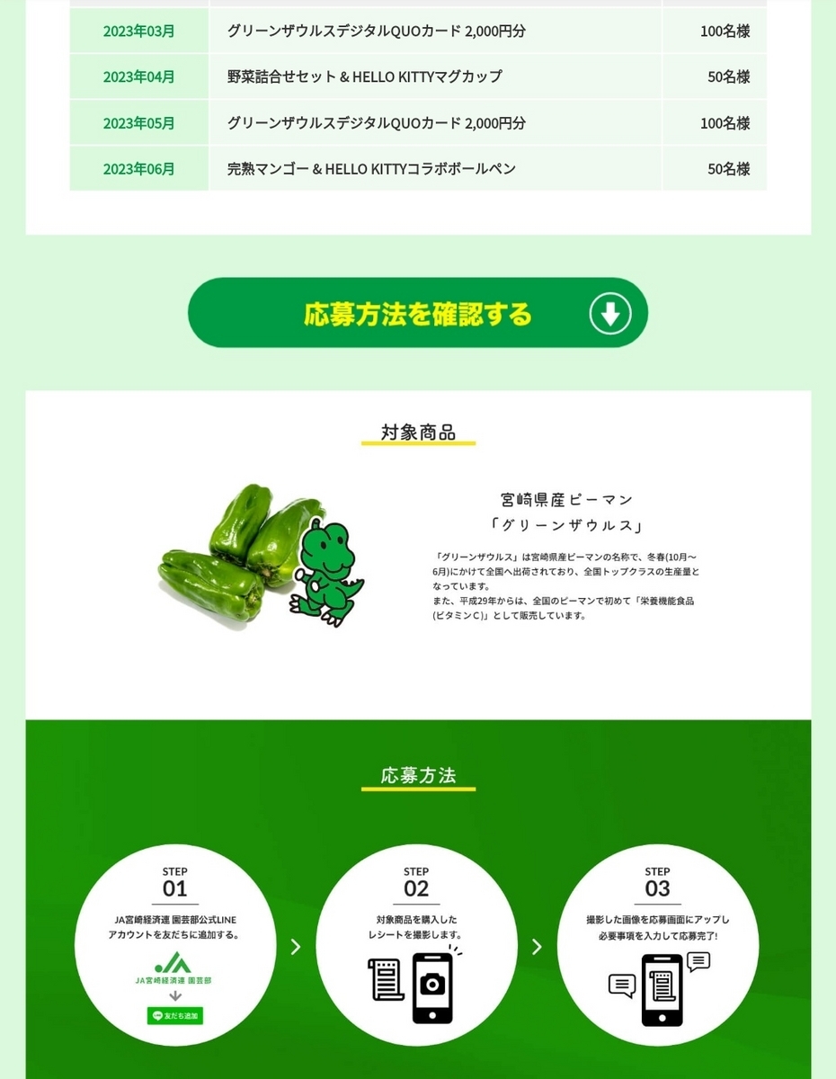 宮崎県産ピーマン「グリーンザウルス 」レシートキャンペーン