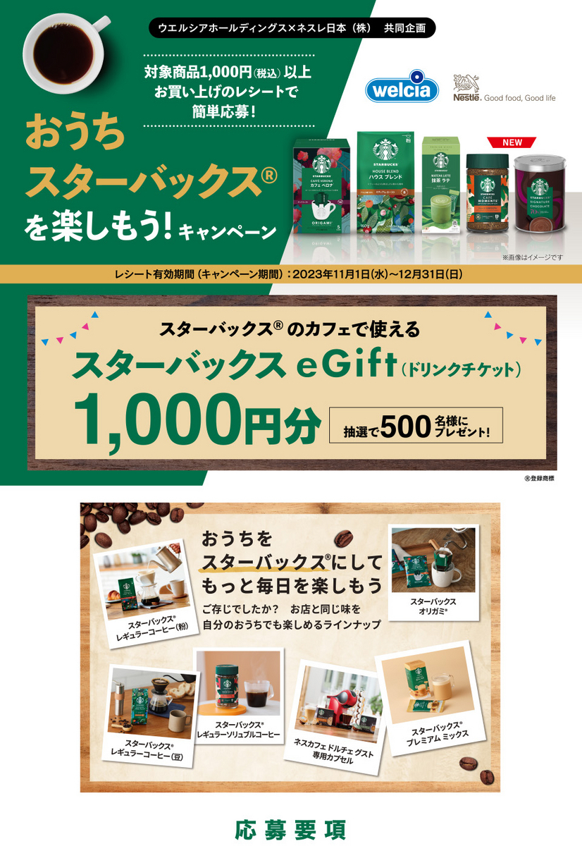 ウエルシアホールディングス×ネスレ日本(株)共同企画 おうちスターバックス(R)を楽しもう!キャンペーン