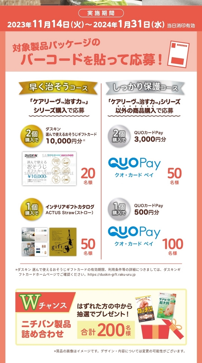・しっかり保護コース ※「ケアリーヴTM治す力TM」シリーズ以外の商品購入でご応募いただけます。