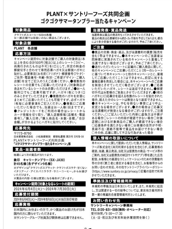 PLANT × サントリーフーズ ゴクゴクサマータンブラー当たるキャンペーン
