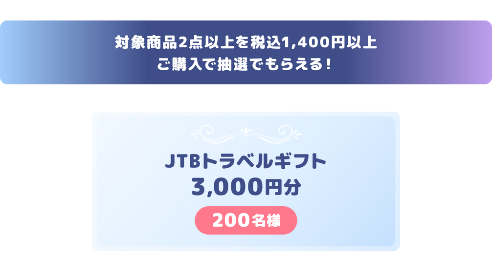 抽選で200名様に「JTBトラベルギフト(3,000円分)」をプレゼントいたします。