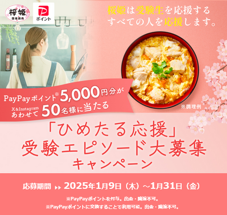 ②本キャンペーン期間内に「#ひめたる応援に」「#桜姫」を付けて、「ひめたる応援(受験あるある)」エピソードと一緒にキャンペーン投稿を引用投稿いただいていること。