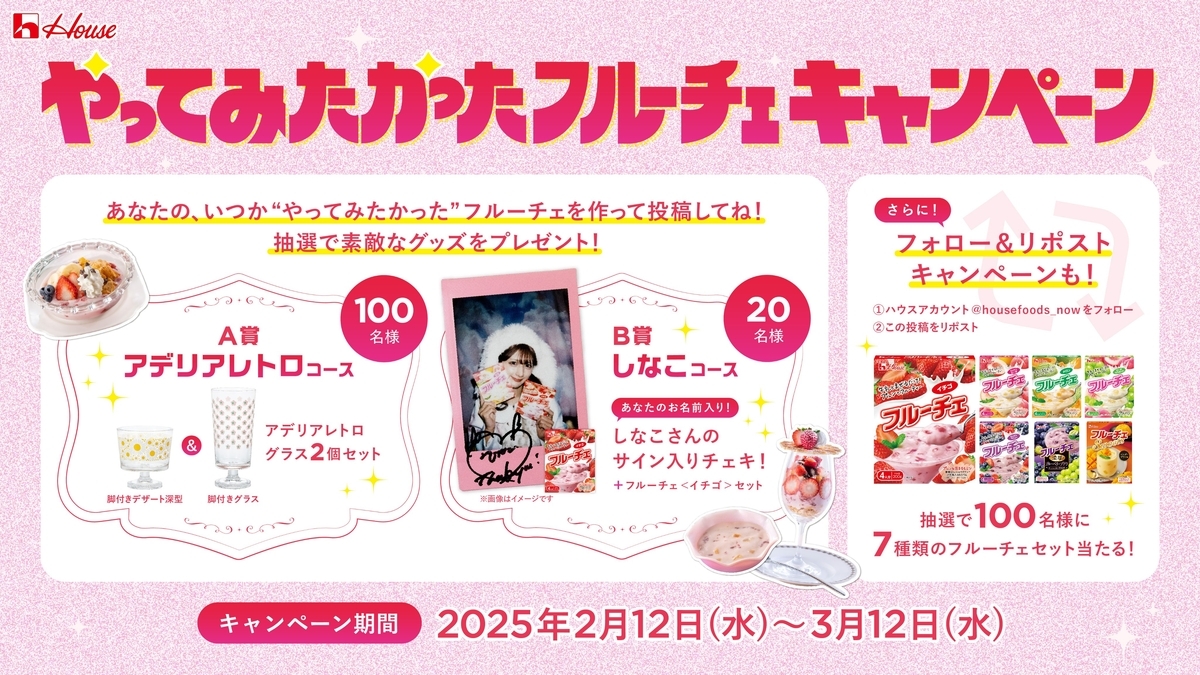 ハウス食品 フルーチェ アデリアレトログラス・しなこサイン入りチェキなどが当たるキャンペーン