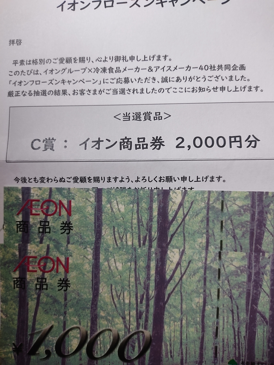 【当選品】2月4個目 イオン フローズン 商品券2,000円分