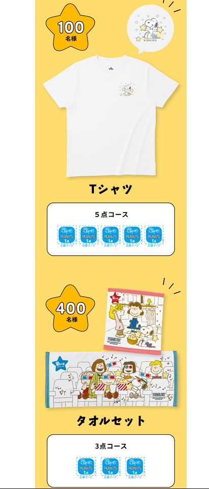 「応募マーク」5点コース スヌーピーTシャツ
