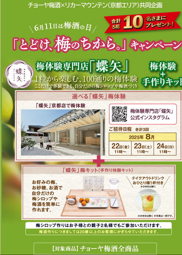 梅体験専門店『蝶矢』「梅体験+手作りキット」が当たる懸賞情報です