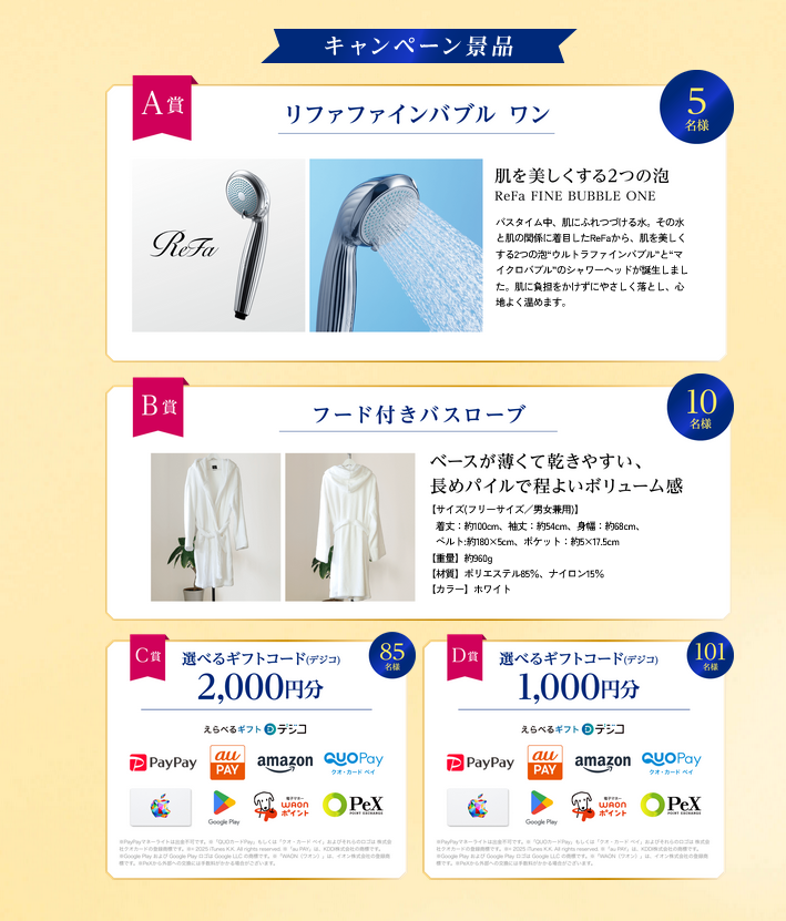 リファファインバブル ワン(シャワーヘッド)などが当たる懸賞情報です