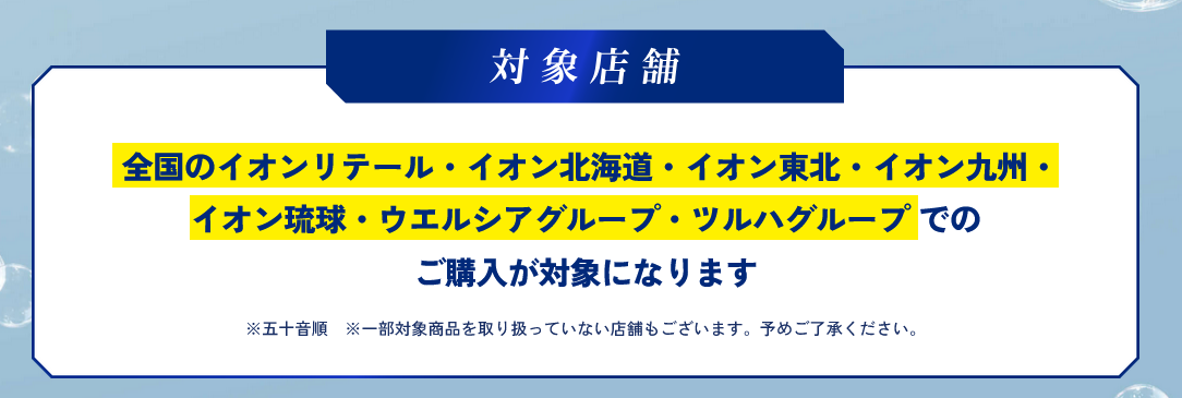 ★全国のイオンリテール・イオン北海道・イオン東北・イオン九州・イオン琉球・ウエルシアグループ・ツルハグループでのご購入が対象になります
