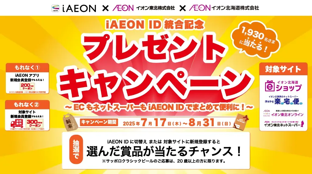 イオン北海道・イオン東北‐ID連携記念キャンペーン | iAEON(アイイオン)-ポイントまとまる。支払いなめらか。イオンの公式トータルアプリ