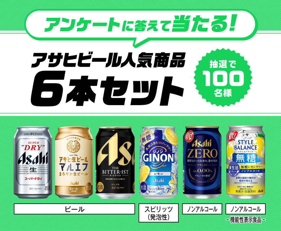 アサヒビール人気商品6本セットが当たる懸賞情報です