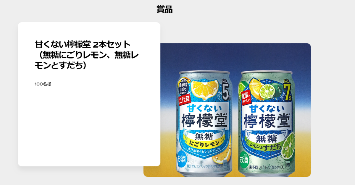 甘くない檸檬堂2本セット(無糖にごりレモン、無糖レモンとすだち) が当たる懸賞情報です