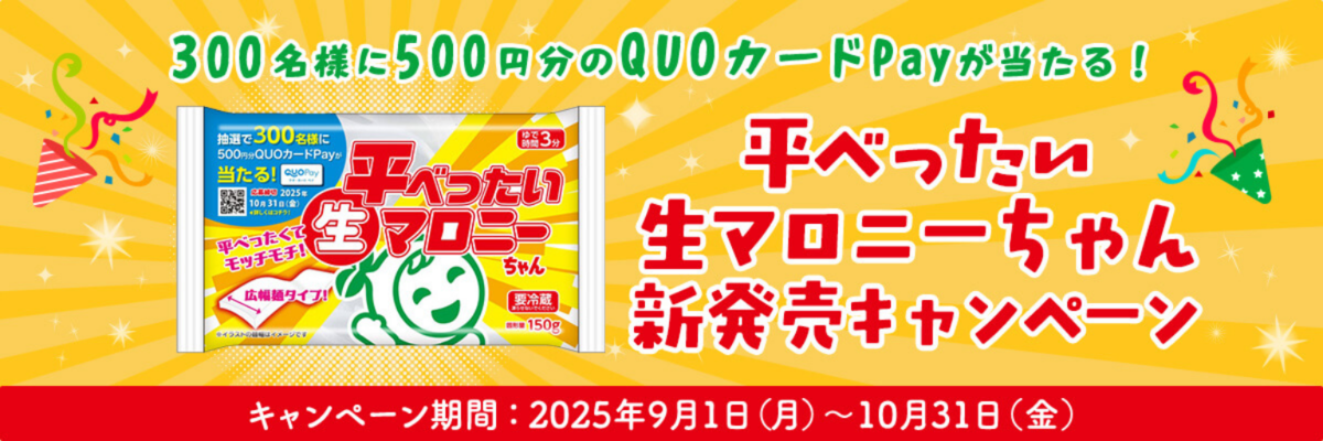 ★ 2025年9月1日(月) 開始、平べったいマロニーちゃんのクローズド懸賞です