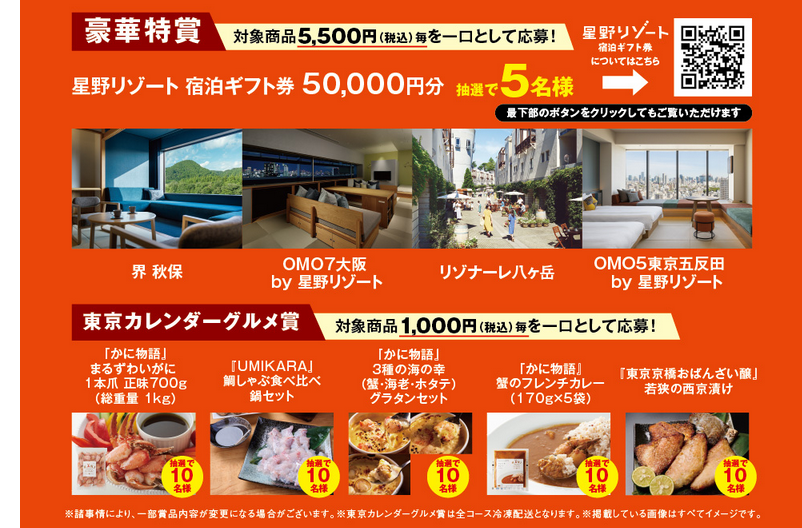 ■東京カレンダーグルメ賞 ※対象商品1,000円(税込)毎を一口として応募可能