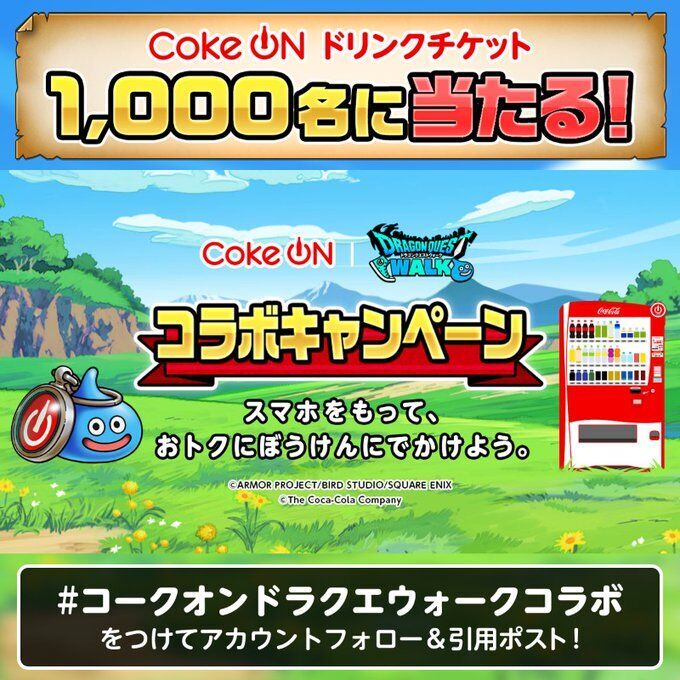 コークオンドラクエウォークコラボ ドリンクチケットが1,000名に当たるキャンペーン