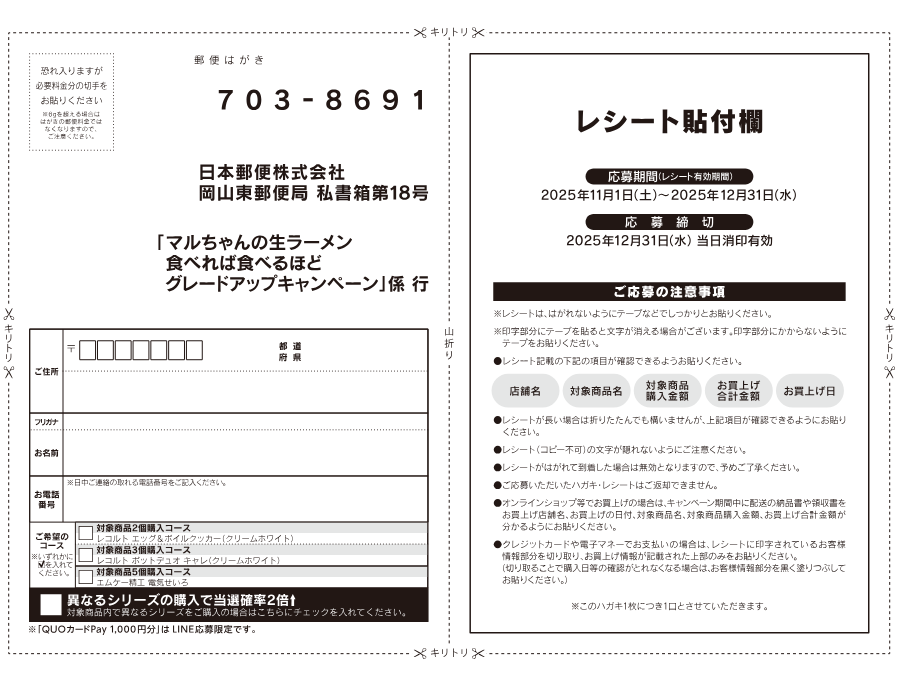 2025年11月1日(土)開始、マルちゃん 生ラーメンのクローズド懸賞です