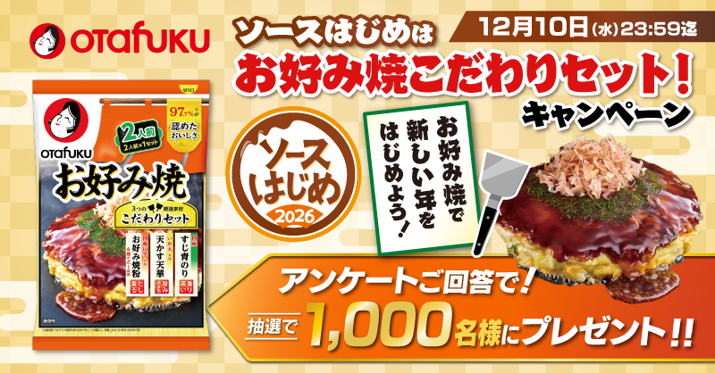 1,000名にオタフクお好み焼こだわりセット2人前が当たる懸賞情報です