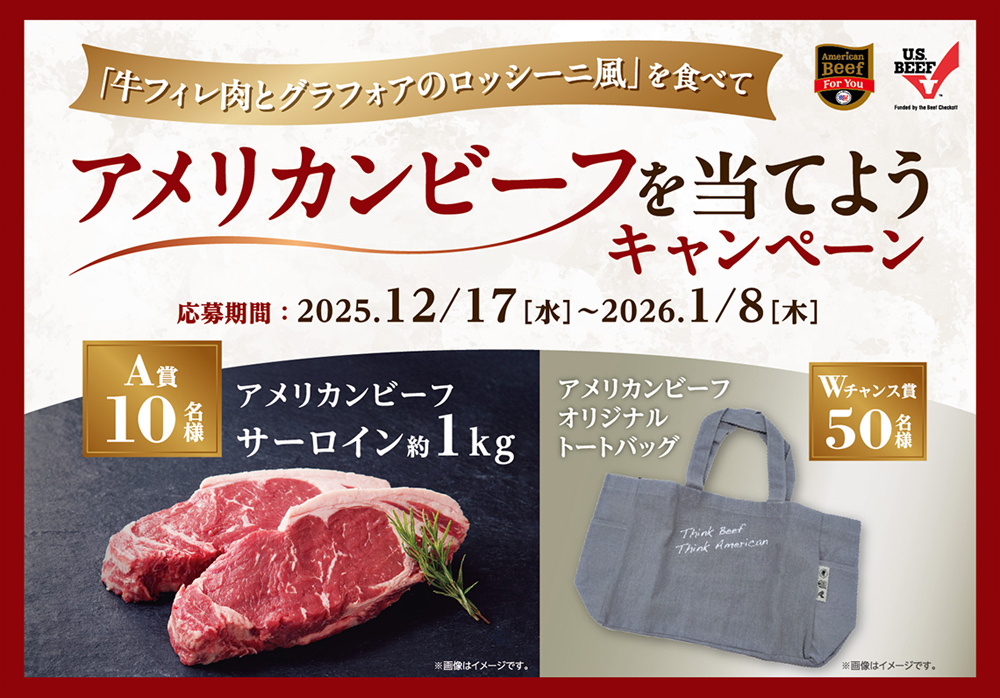 「牛フィレ肉とグラフォアのロッシーニ風」を食べてアメリカンビーフを当てようキャンペーン