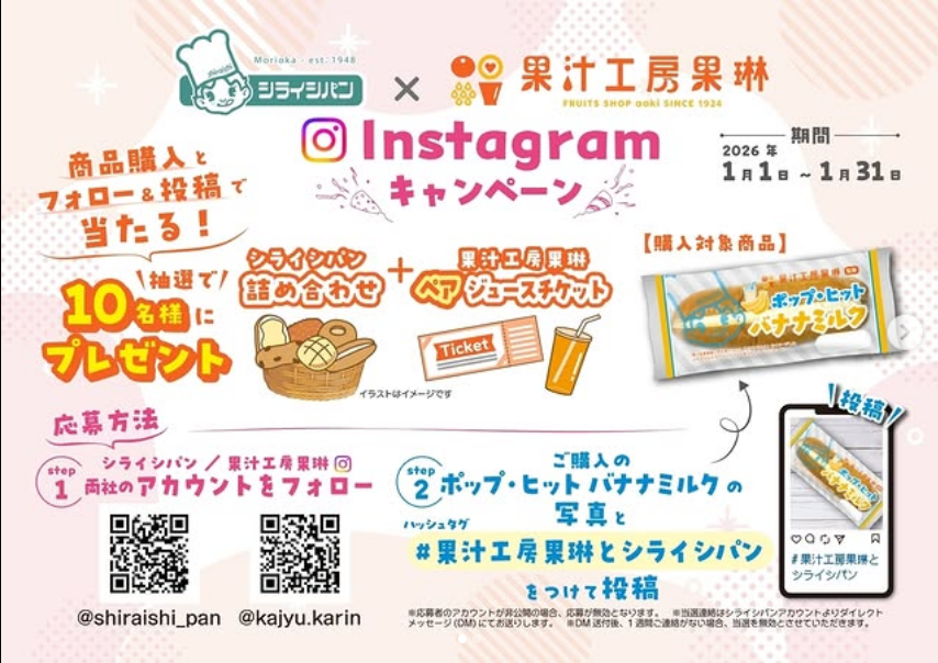 シライシパン / 果汁工房 両社のアカウントをフォロー