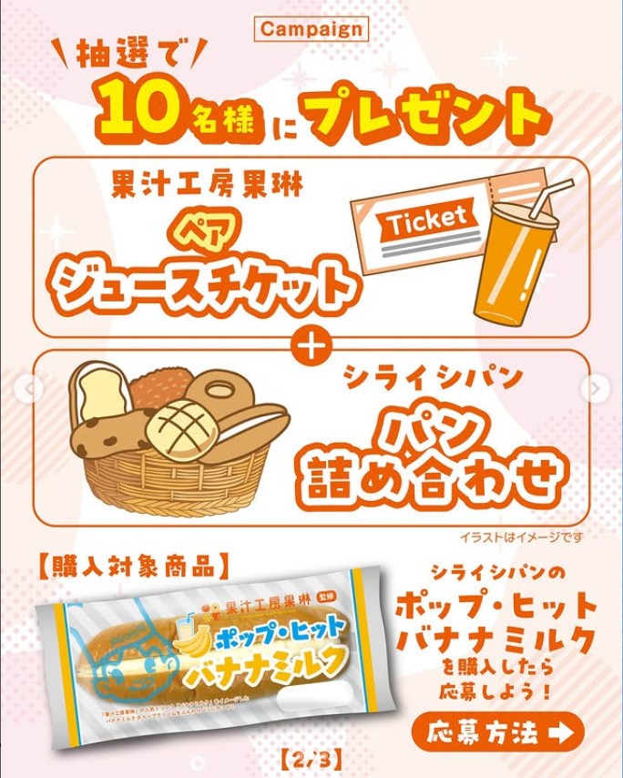 シライシパン 果汁工房果琳 ポップンヒット バナナミルク キャンペーン