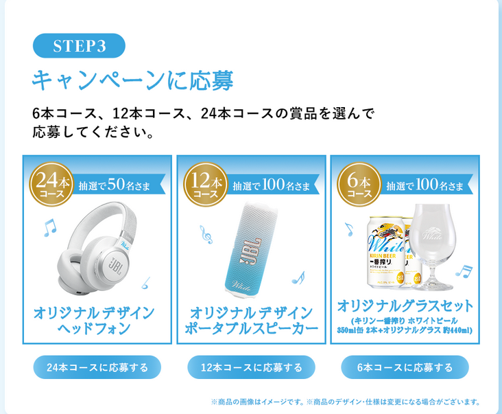 キリン一番搾り ホワイトビール 「一番搾りホワイト×JBL オリジナル音楽グッズがその場で当たる!!キャンペーン」