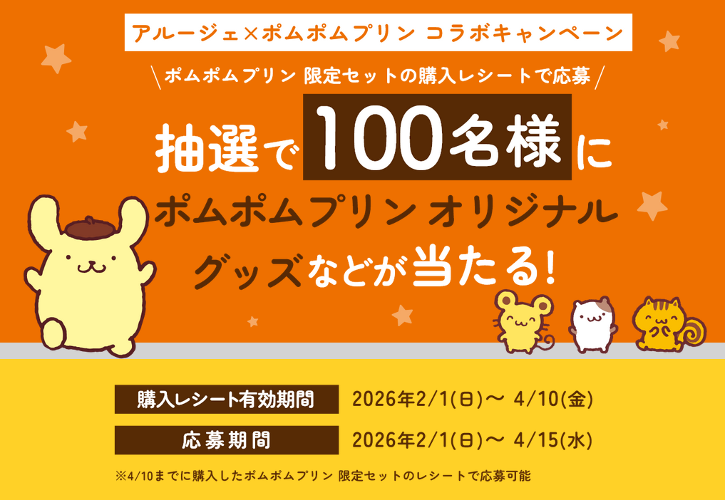 ポムポムプリン ルームペア宿泊券などが当たる懸賞情報です