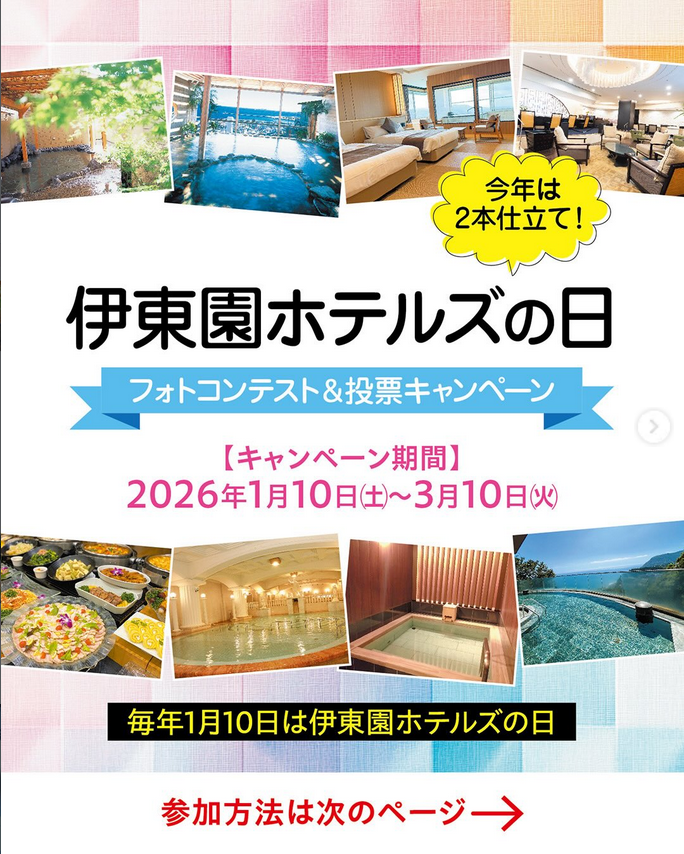 2026年1月10日(土)開始、伊東園ホテルのフォトコンとオープン懸賞です
