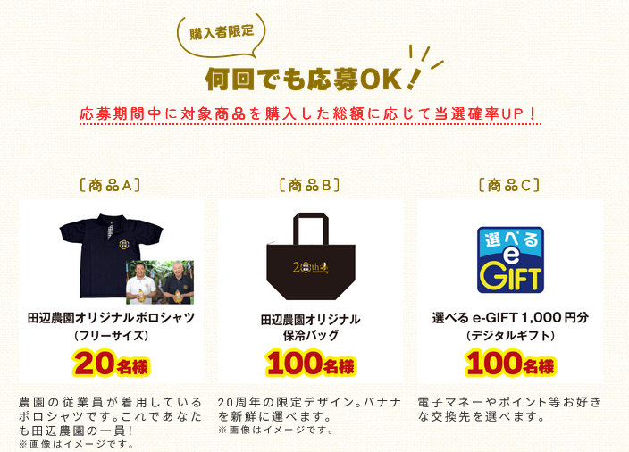 [田辺農園バナナ]日本発売20周年ありがとうキャンペーン | 田辺農園