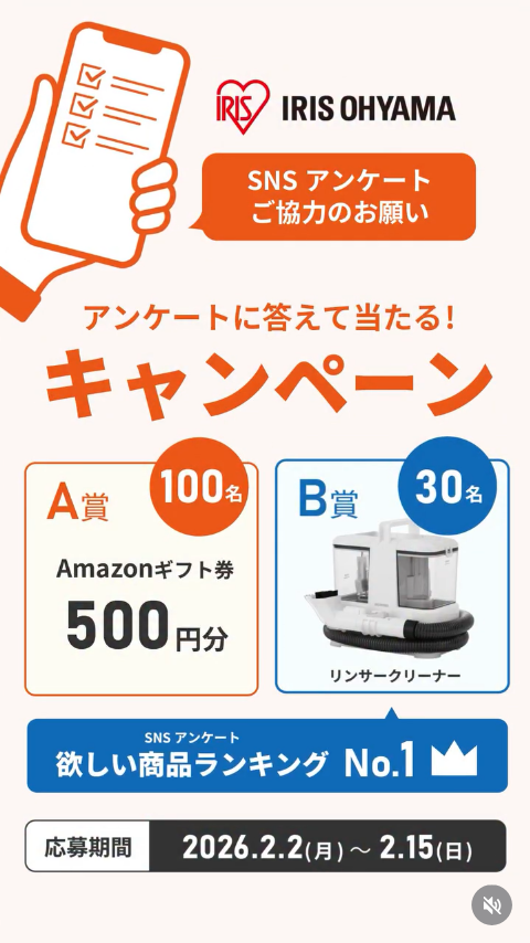 2026 年 2 月 2日開始、アイリスオーヤマのオープン懸賞です