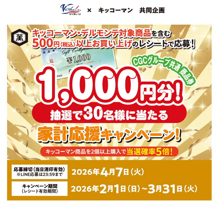 ブイチェーン・キッコーマン 家計応援キャンペーン